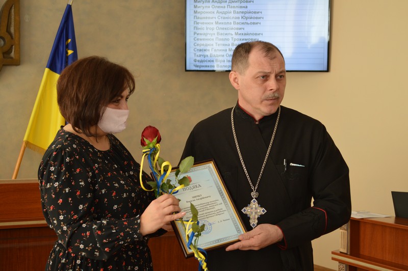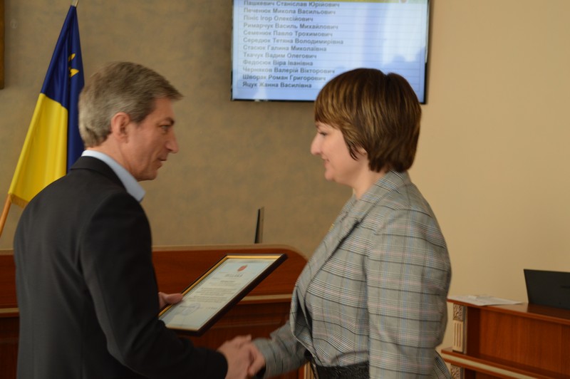 Міський голова Ігор Чайка з секретарем міської ради Оксаною Багновою за активну громадянську позицію, патріотизм і самовідданість, стійкість та мужність, виявлені під час Революції Гідності, вручили Подяки її активним учасникам.