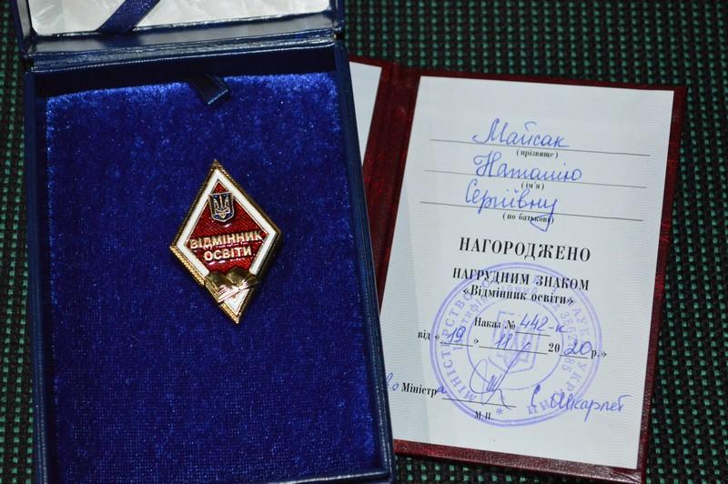 Крім того, виконали ще одну почесну місію і вручили нагрудний знак “Відмінник освіти” Наталії Майсак, методист станції юних натуралістів.