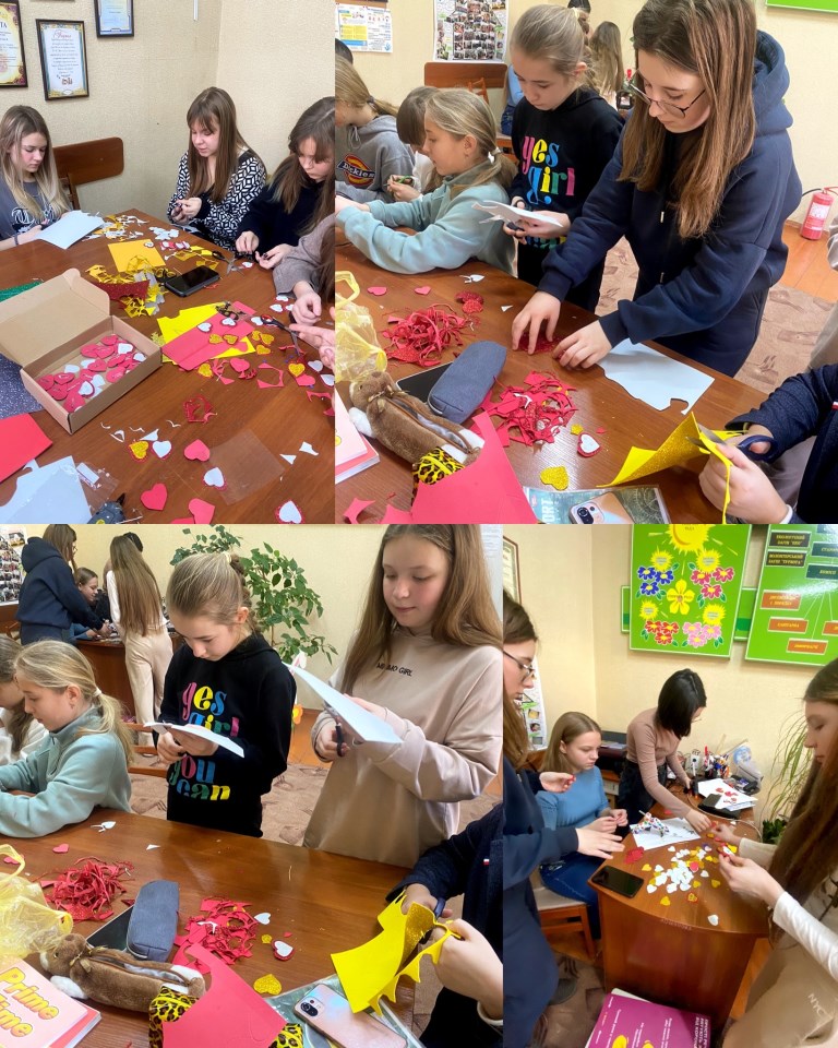 Спочатку провели майстер-класи для членів Ради старшокласників міста з виготовлення ексклюзивних “сердечок” за сприяння студентів промислово-економічного фахового коледжу ЛНТУ Тетяни Маркевич та Маші Дунай (керівник Олександр Вельма).