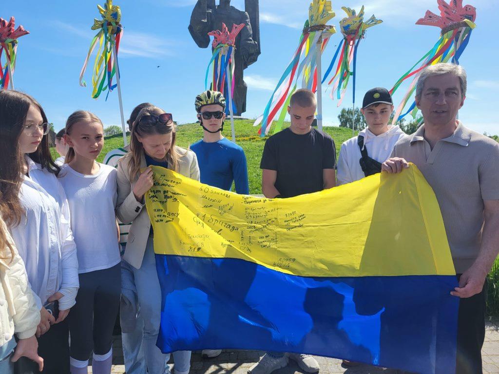 Міський голова Ігор Чайка привітав делегацію та вручив наш синьо-жовтий прапор з підписами військових. Мер попросив, аби вони розповідали під час своїх зустрічей про реальні події в Україні, що саме наша держава тепер захищає мир та свободу у Європі.