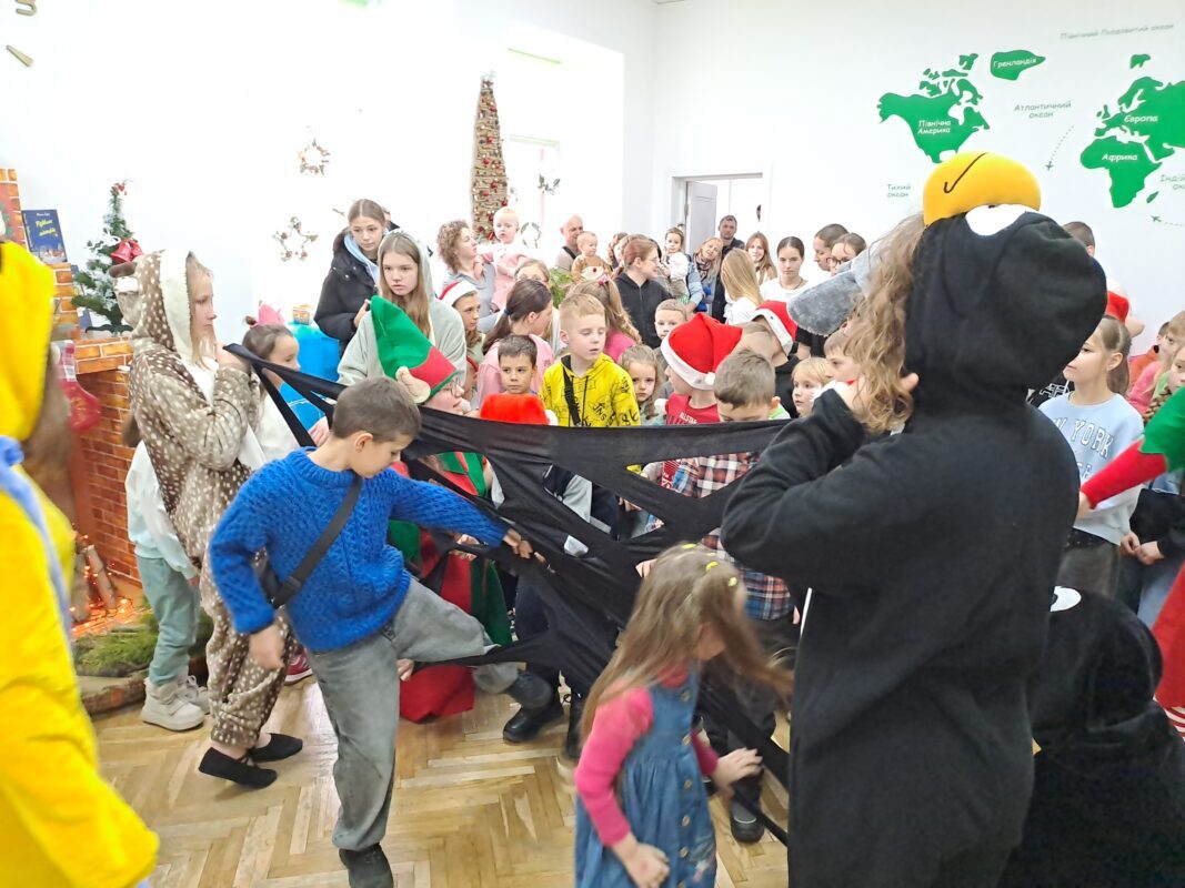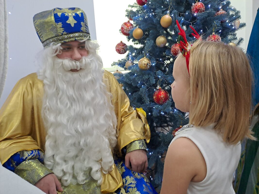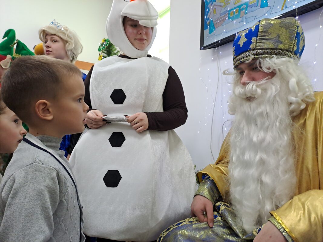Поринути в атмосферу зимової казки хлопчикам і дівчаткам допомогли актори театру-студії «10 ряд 10 місце». Вони підготували для маленьких відвідувачів інтерактивну програму з іграми, піснями, танцями та веселими завданнями, які подарували дітям щирі усмішки й чудовий настрій.