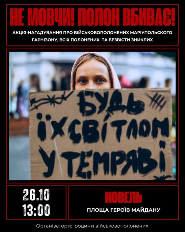У Ковелі в неділю, 26 жовтня, о 13:00 в центральній частині міста відбудеться акція «Не мовчи! Полон – вбиває».