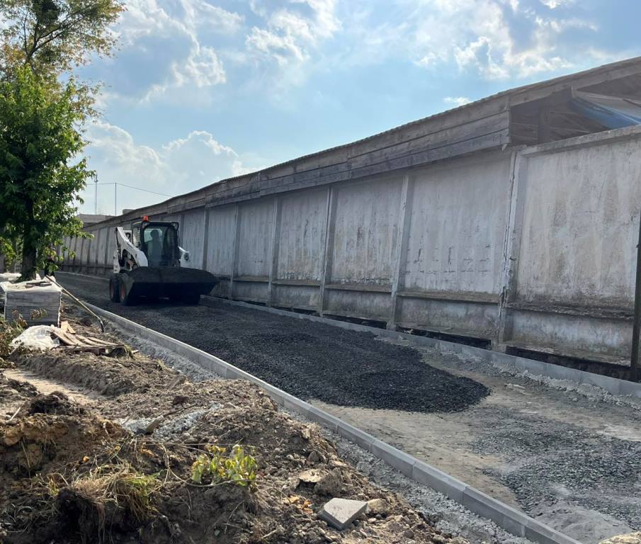 тротуарні доріжки (завершують вкладати бруківку на невеликій ділянці);