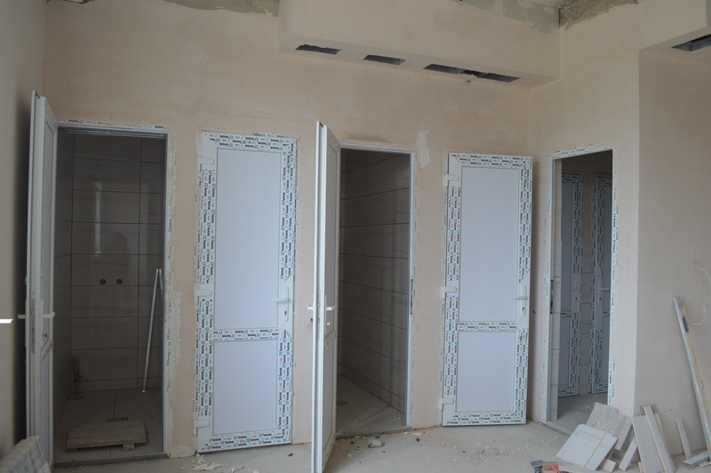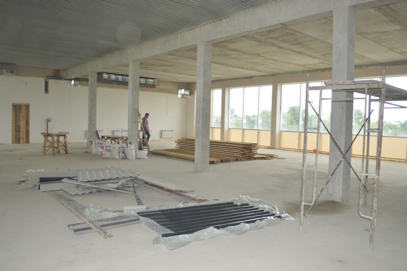 Робітники ПрАТ «Луцьксантехмонтаж № 536» сьогодні працюють у підтрибунних приміщеннях. Закінчують штукатурити стіни, обкладати плиткою душові кабіни та облаштовувати санвузли. Також займаються встановленням підвіконь, на черзі — укладання паркету, монтаж стелі та оздоблення стін.