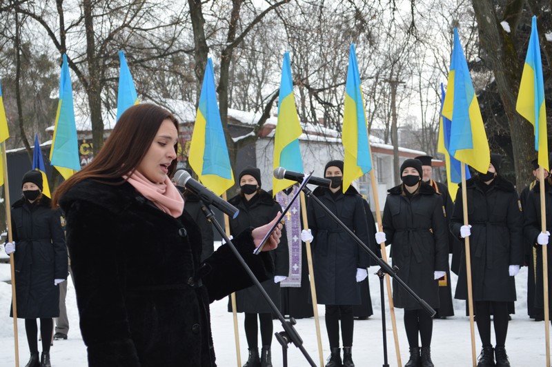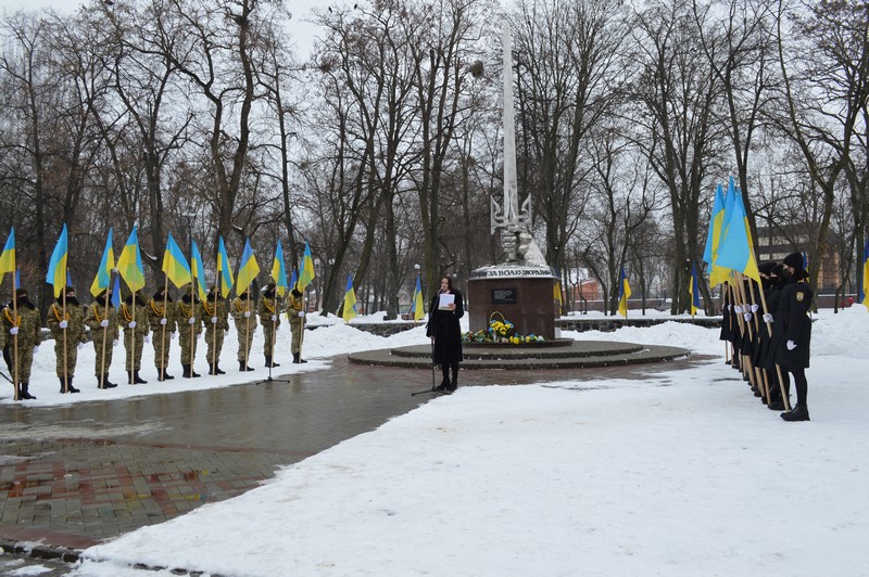Ведуча заходу Аліна Кубська нагадала присутнім про трагічні події, коли влада розстрілювала свій народ. Людей, які пішли у бій з несправедливістю, заради свободи і кращого майбутнього України.