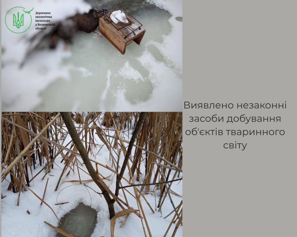 30 січня, інспектори Державної екологічної інспекції у Волинській області, під час проведення заходів, спрямованих на виявлення та запобігання порушень вимог природоохоронного законодавства, на території Ковельського району, поблизу річки Стохід, біля села Угли, виявили та вилучили незаконні засоби добування об’єктів тваринного світу.