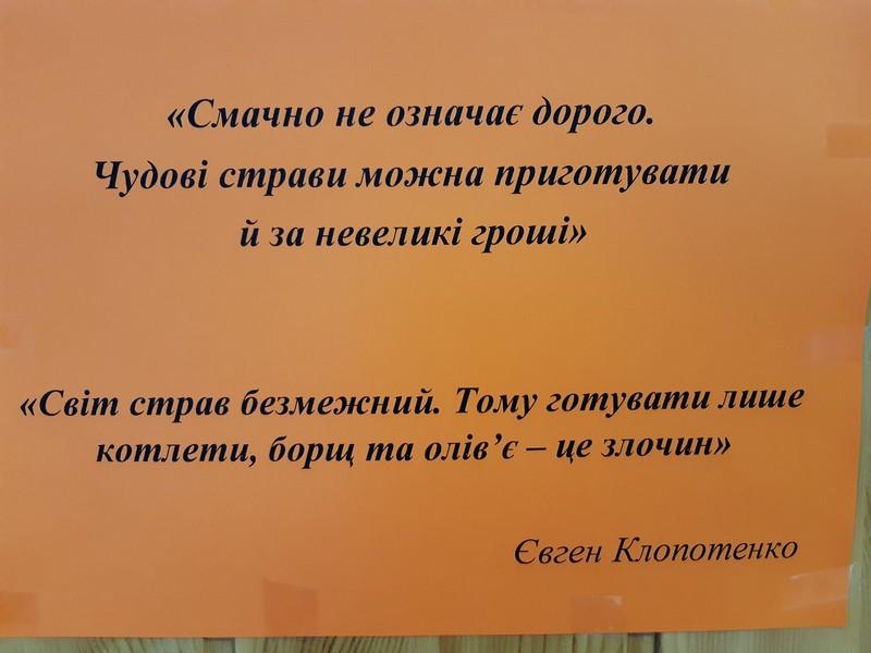 З 19 жовтня в ліцеї № 10 стартував тематичний тиждень «Нове шкільне харчування». Його родзинкою стане кулінарна експертиза страв з нового «Збірника рецептур страв для харчування дітей шкільного віку», автором якого є висококваліфікований кухар, кулінарний експерт та автор проекту «Нове шкільне харчування» Євген Клопотенко. Він працює над тим, щоб страви, які нині пропонуватимуть дітям у їдальнях шкіл та дошкільних закладів, були одночасно і смачними, і гарними на вигляд.