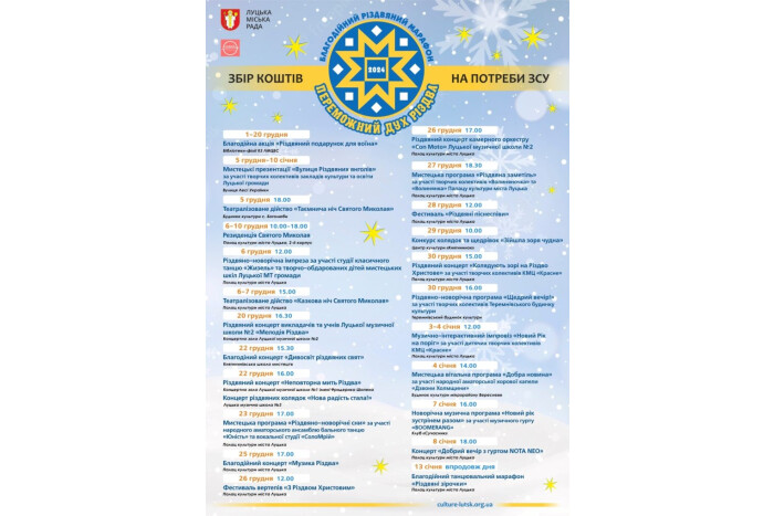 Впродовж грудня 2023 і січня 2024 року у Луцькій громаді триватиме культурно-мистецький благодійний Різдвяний марафон «Переможний дух Різдва».