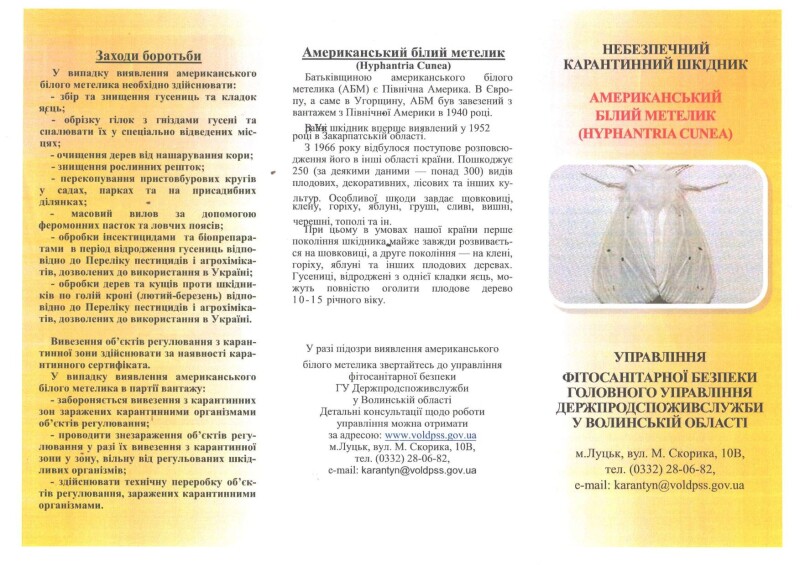 З метою запобігання розповсюдження, своєчасній локалізації та ліквідації шкідливого організму Hyphantria cunea Drury інформуємо всіх землевласників, землекористувачів, суб’єктів господарювання про заходи проведення карантинних заходів з його ліквідації.