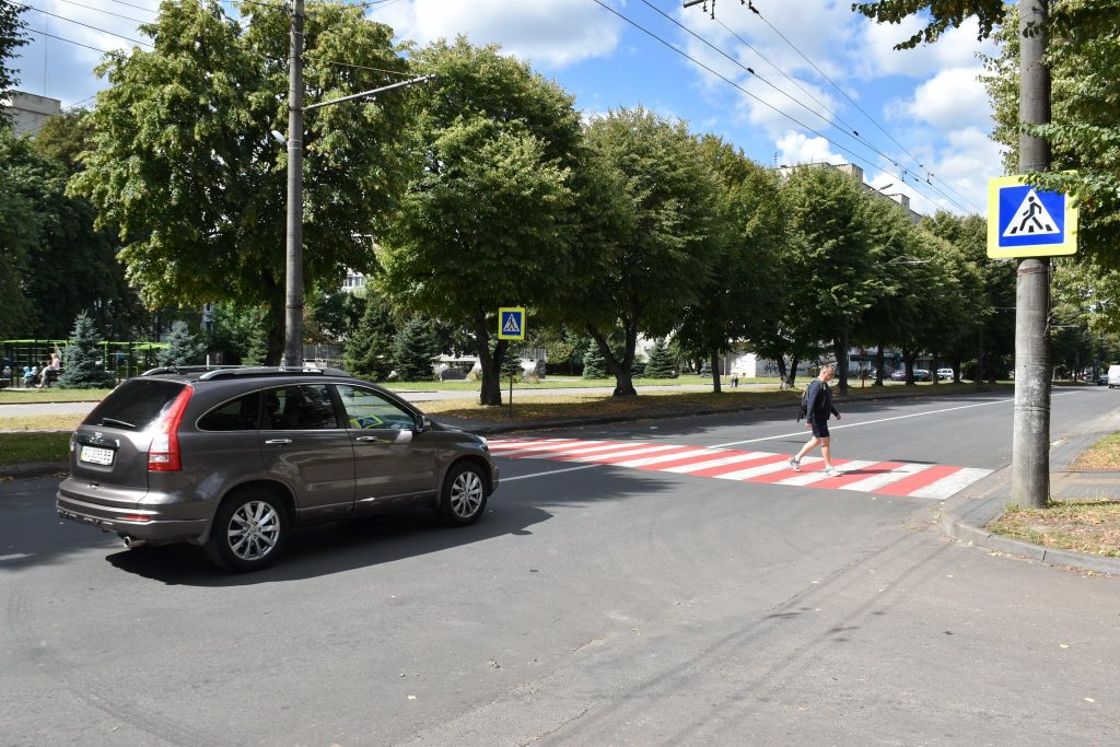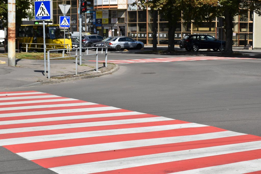 На багатьох вулицях Луцька наносять нову розмітку. Особлива увага оновленню розмітки на пішохідних переходах біля навчальних закладів, де дорожники наносять смуги біло-червоного кольору з фарби зі світловідбивним ефектом.