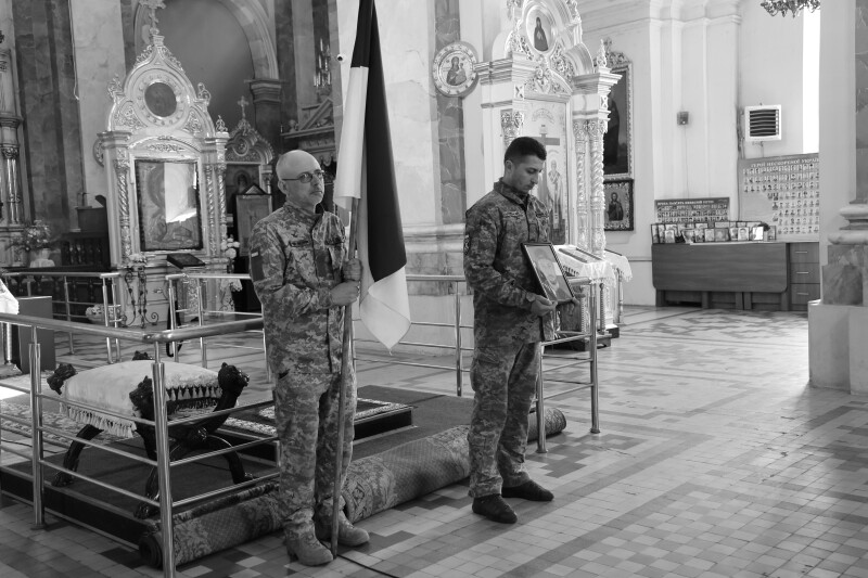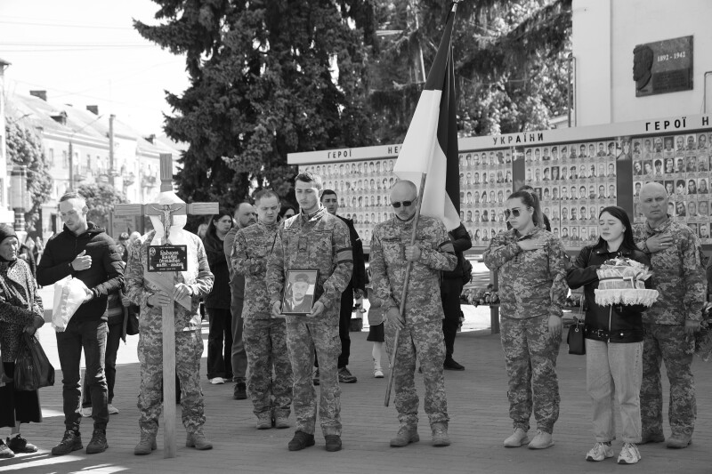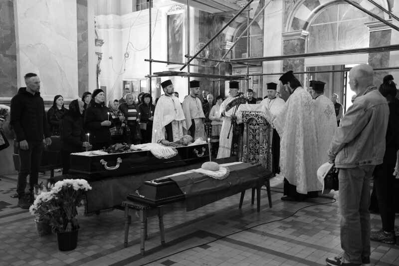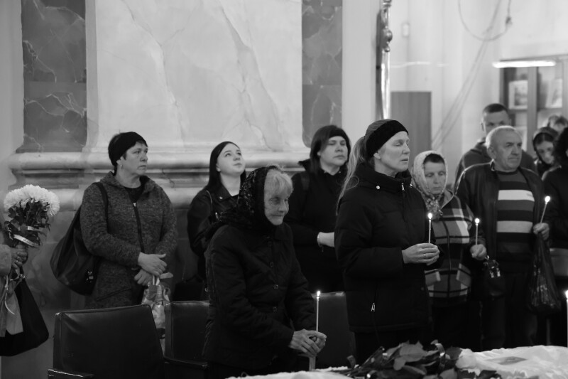 Після завершення заупокійного богослужіння труну з тілом захисника пронесли Театральним майданом.