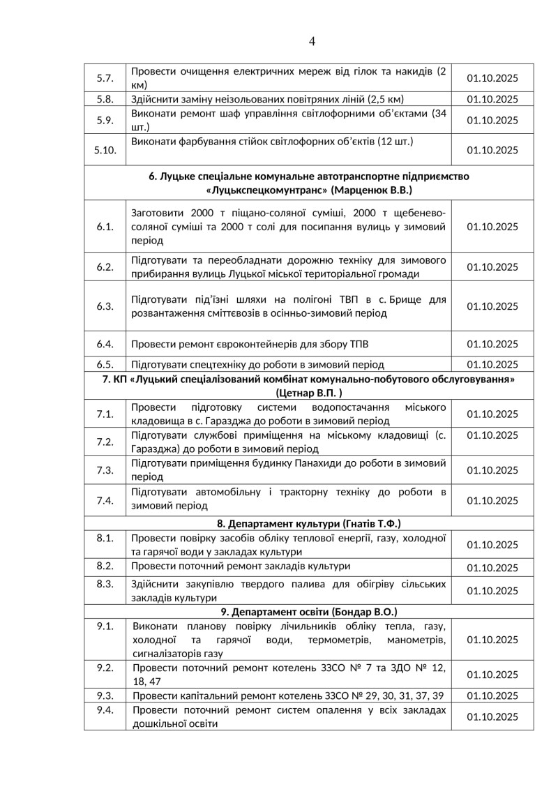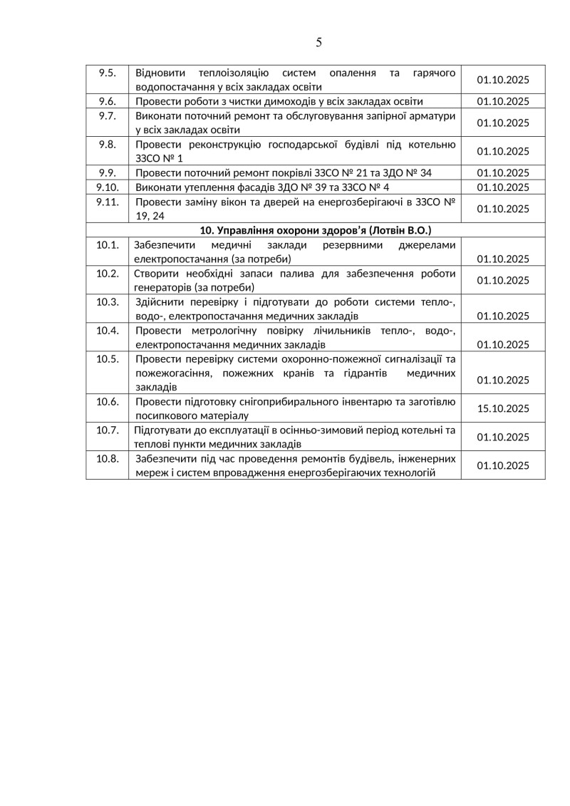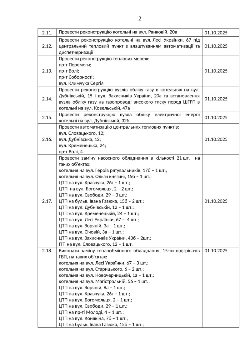 Докладніше із роботами, які будуть виконані до початку опалювального сезону можна дізнатися з додатків