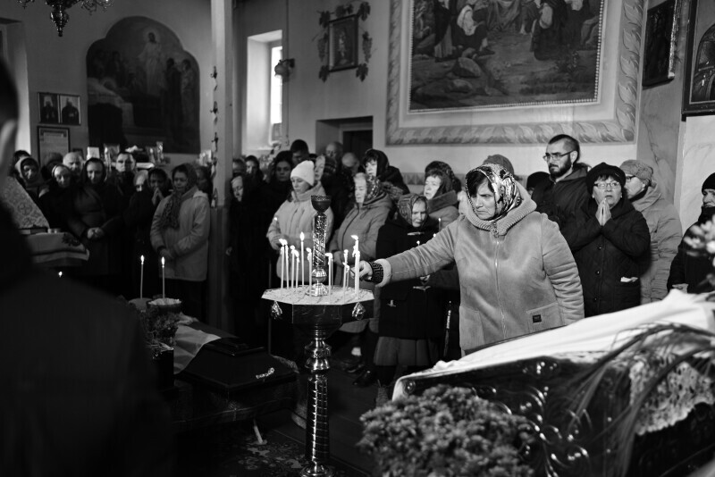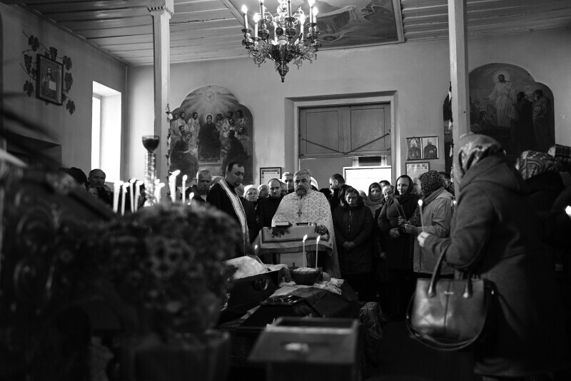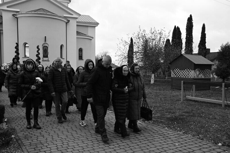 Після завершення чину похорону односельчани провели Романа Мельничука в останню дорогу живим коридором. Перед труною із тілом загиблого захисника вони ставали на коліна і схиляли голови.