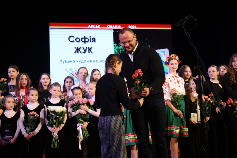 Щорічна мистецька акція «Овація» відбувається за підтримки Луцького міського голови Ігоря Поліщука. У 2025-му вихованці мистецьких шкіл громади отримали за її підсумками 51 відзнаку – це 9 творчих колективів і 42 сольних виконавців та юних художників. Героями дня стали також педагоги-наставники, які розкривають таланти своїх вихованців та ведуть їх у світ прекрасного.