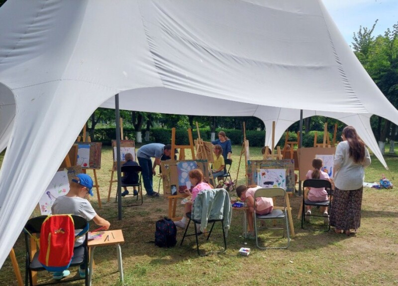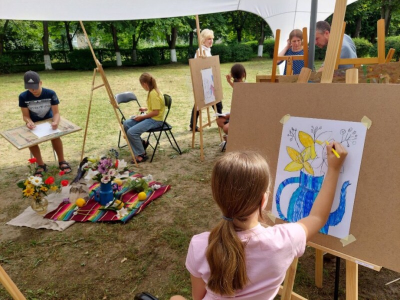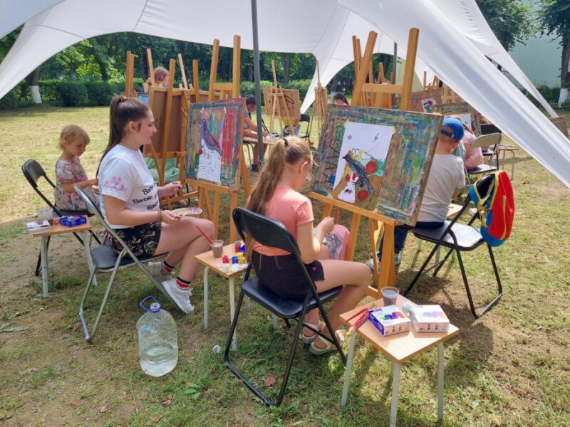 Заняття із живопису організували викладачі Луцької художньої школи. Просто неба на подвір’ї школи діти відтворювали запропонований викладачами натюрморт з квітів, птахів, фруктів. Окремі з них вперше тримали у руках пензель, але невимушена атмосфера, доброзичливість і професійність викладачів, зацікавленість дітей сприяли позитивному результату. Усі учасники отримали масу емоцій від спілкування та заняття творчістю.