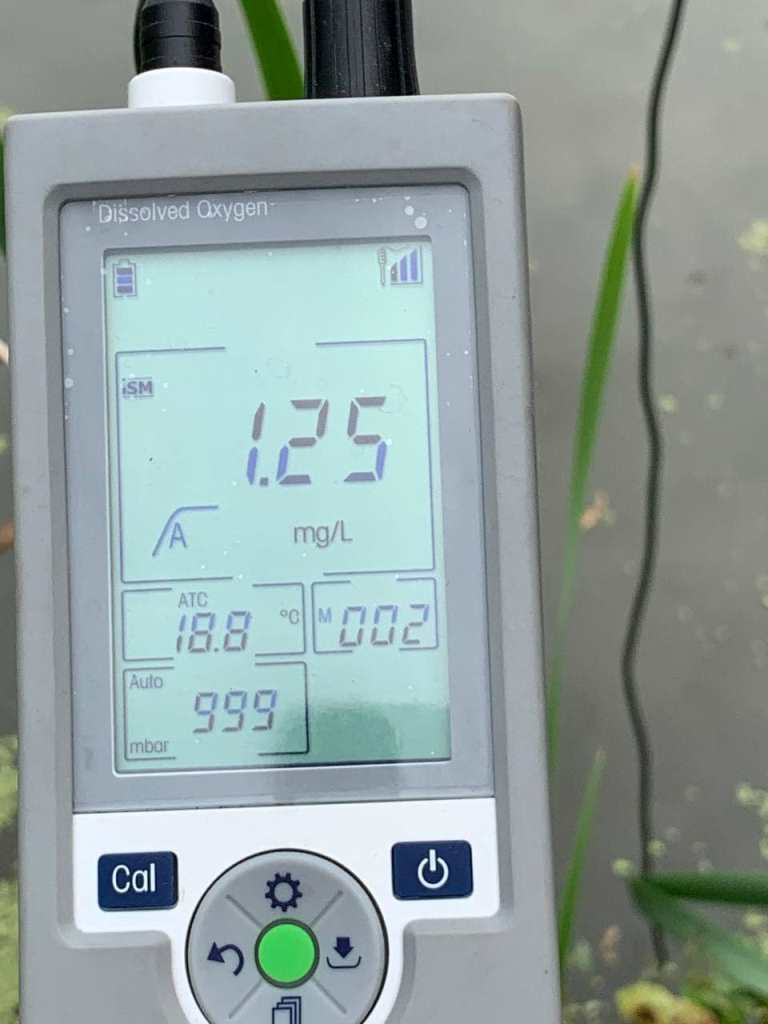 Спеціалісти Держекоінспекції провели заміри на вміст розчинного кисню у воді, що становить 1,25 млг/дм3, при нормі не менше 4,0 млг/дм3.