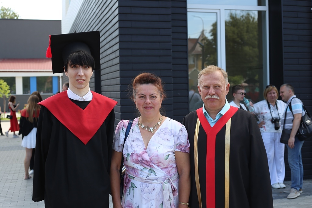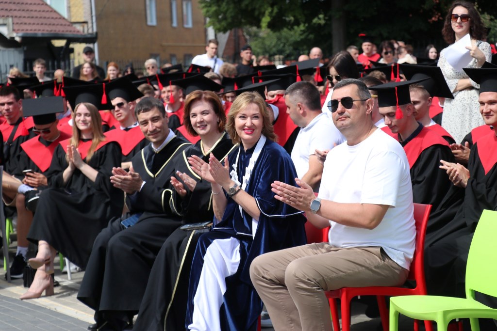 Серед почесних гостей сьогоднішнього заходу – Голова Волинської обласної ради Григорій Недопад, який також доєднався до вітань. У своєму виступі він наголосив на важливості здобутої освіти для майбутнього країни та висловив впевненість у тому, що випускники ЛНТУ зроблять значний внесок у розвиток Волині та України загалом. Він подякував студентам за їхню наполегливу працю та батькам за підтримку, побажавши всім випускникам успіхів у подальшій професійній діяльності та особистому житті.