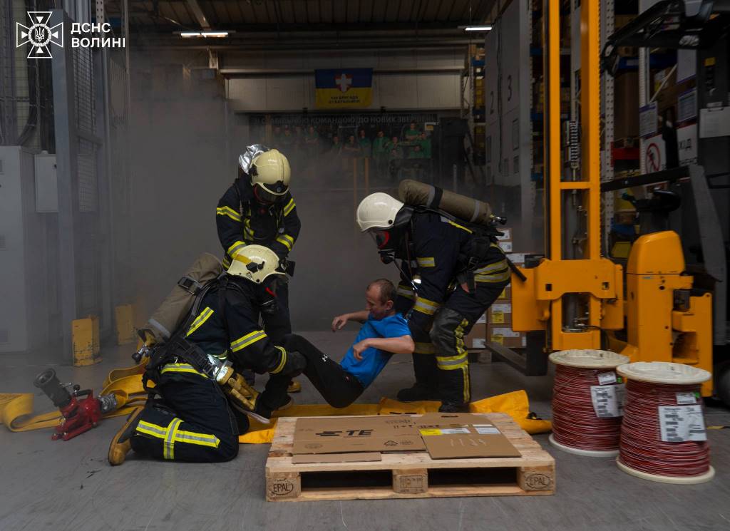 У Луцькому районі організували навчання рятувальників на території виробничого підприємства