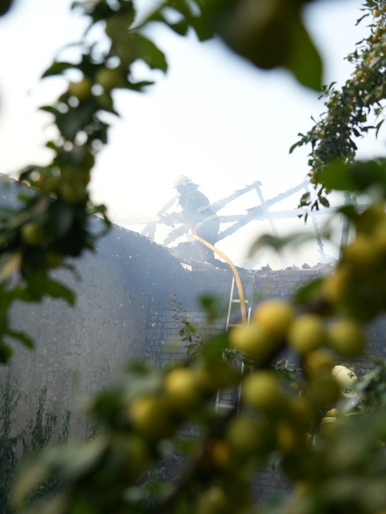 З’ясувалося, що вогонь охопив частину покрівлі цегляної господарської споруди, худоби у приміщенні не було.