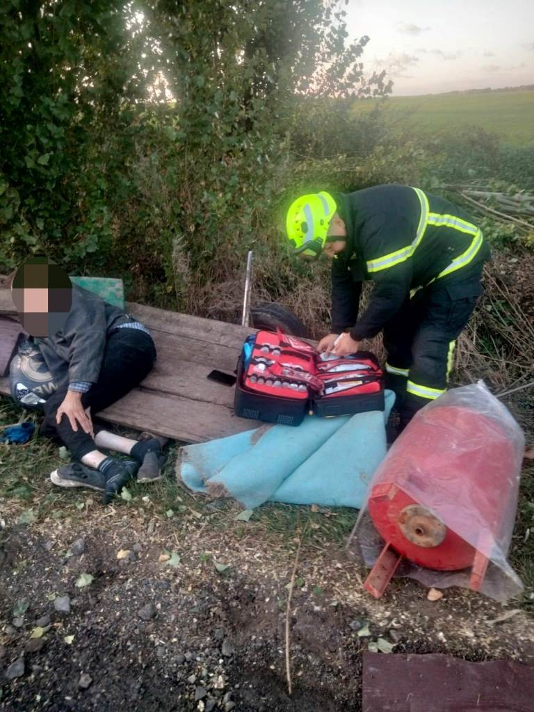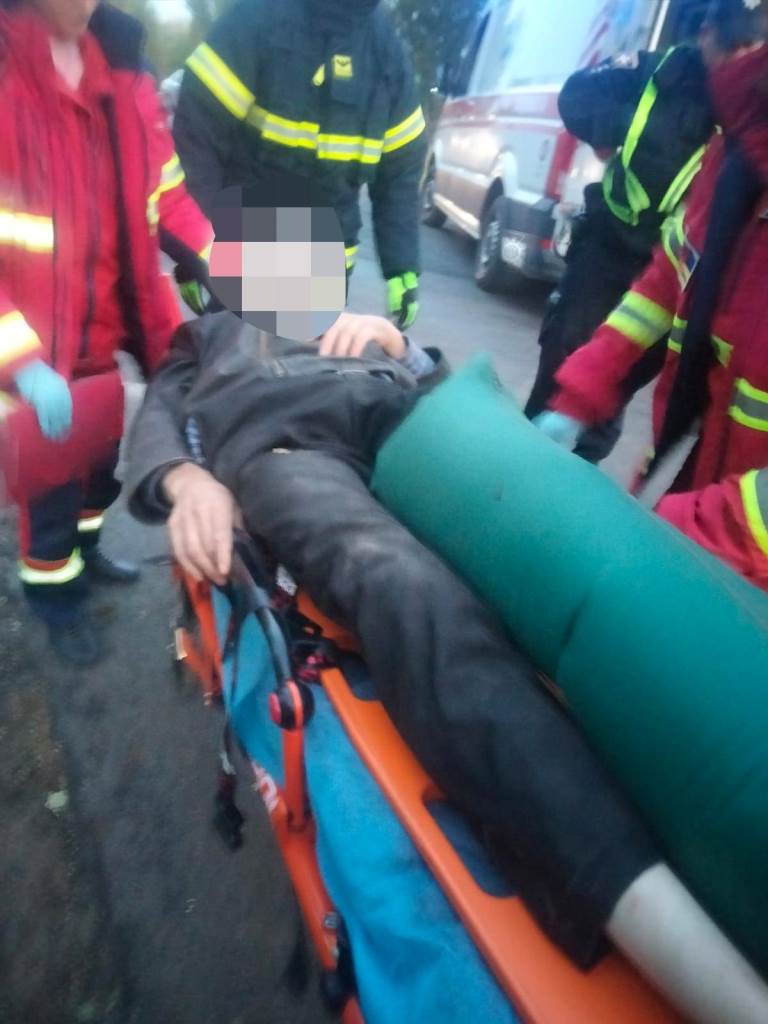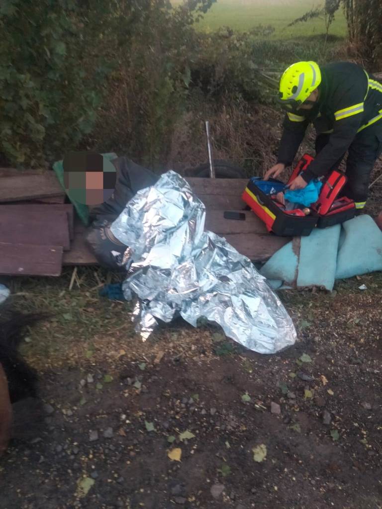 На місці події працювали рятувальники групи рятувальних робіт. Вони надали першу домедичну допомогу травмованому й передали його медикам, які госпіталізували чоловіка. Крім того, вжили заходів для запобігання займанню легкового автомобіля.