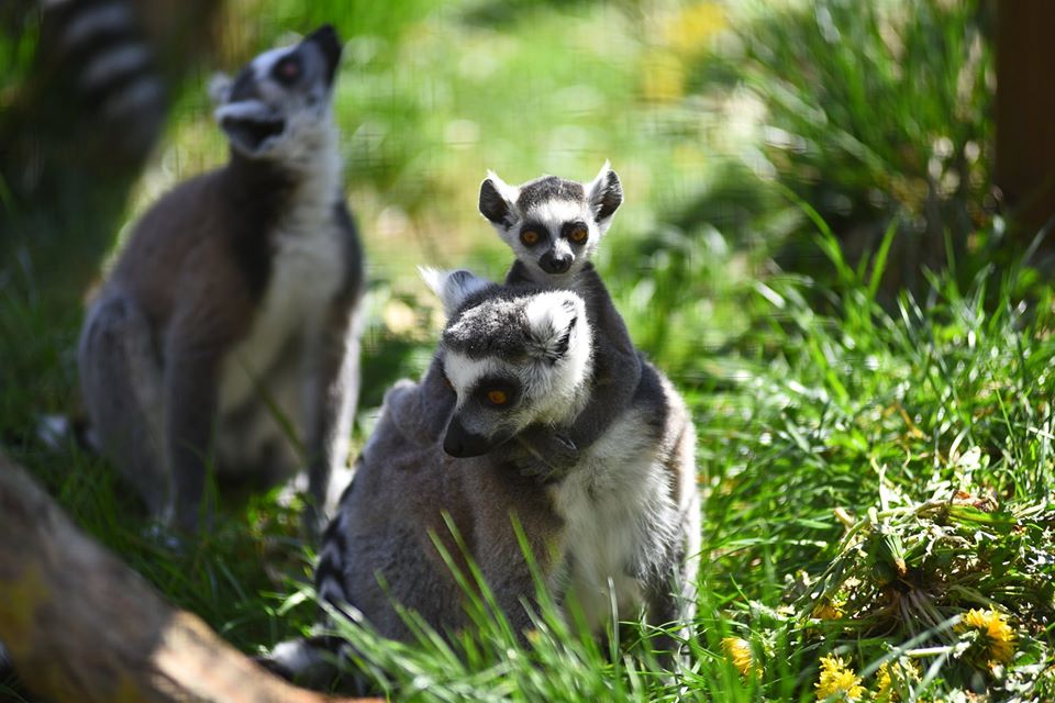 У березні народився малюк у лемурів. Ним опікується ціла родина, почергово носячи на спині. Тож хвостатику комфортного як із мамою, так і з татом чи старшим братиком.