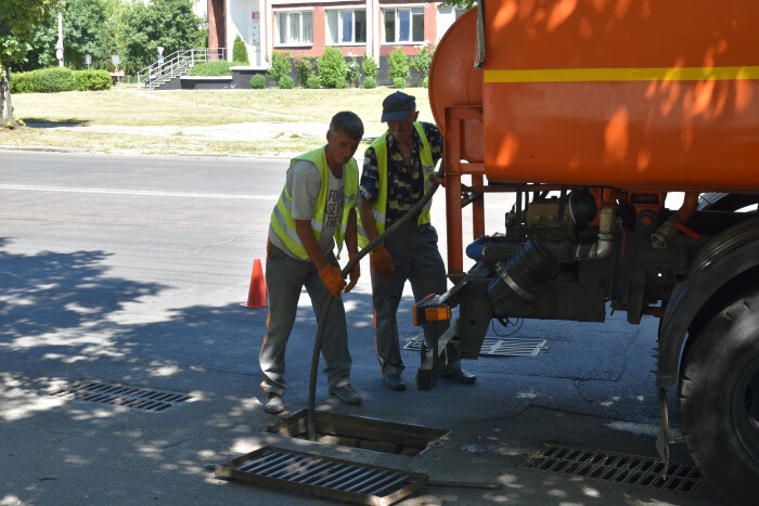 У цих роботах задіяно чотири одиниці техніки та семеро працівників. Спочатку робітники очищають решітки системи зливової каналізації від листя та іншого сміття, потім спеціальний трактор витягує багнюку, а завершує процес каналопромивочна машина.