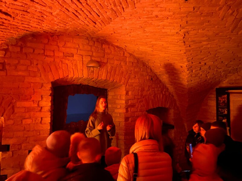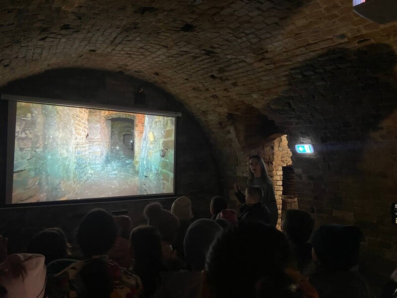 Розпочалася екскурсія з відвідування знаменитих луцьких підземель Монастиря єзуїтів, яким понад 500 років. Сьогодні – це креативний підземний музейний простір, що включає 22 приміщення: 18 кімнат і 4 коридори загальною площею понад 700 м2.