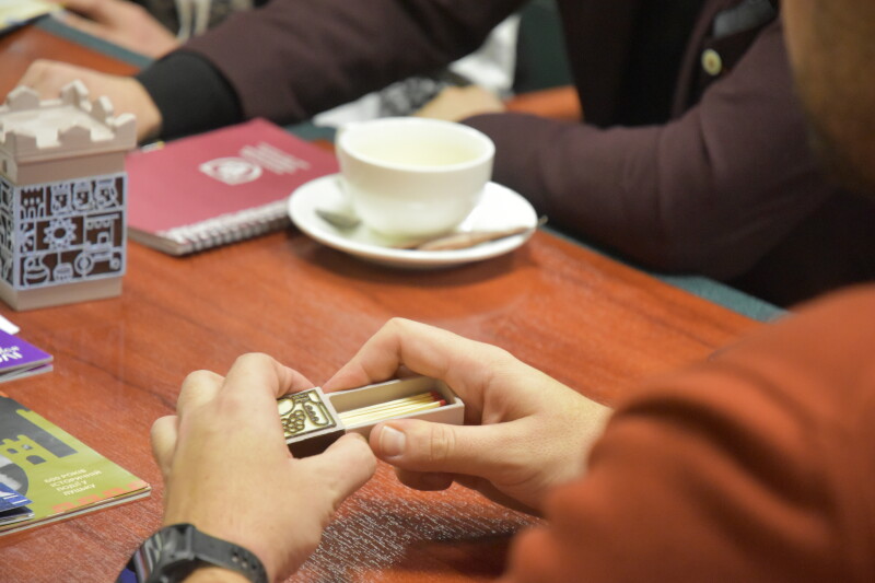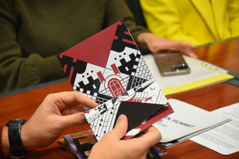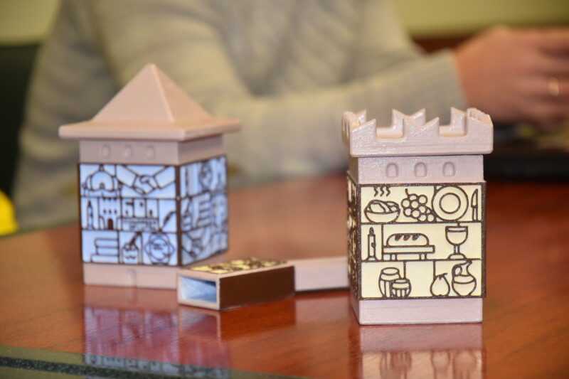 Науковці кафедри дизайну ВНУ імені Лесі Українки Дмитро Авраменко та Марія Назарчук представили міському голові свої розробки до пам’ятної дати. Це дизайн каталогу про 600-річчя З’їзду європейських монархів, ювілейний набір шахів, свічки та сірники, а також “Ходень” – мобільний застосунок для прогулянки історичними маршрутами Луцька, пов’язаними з іменем князя Вітовта.