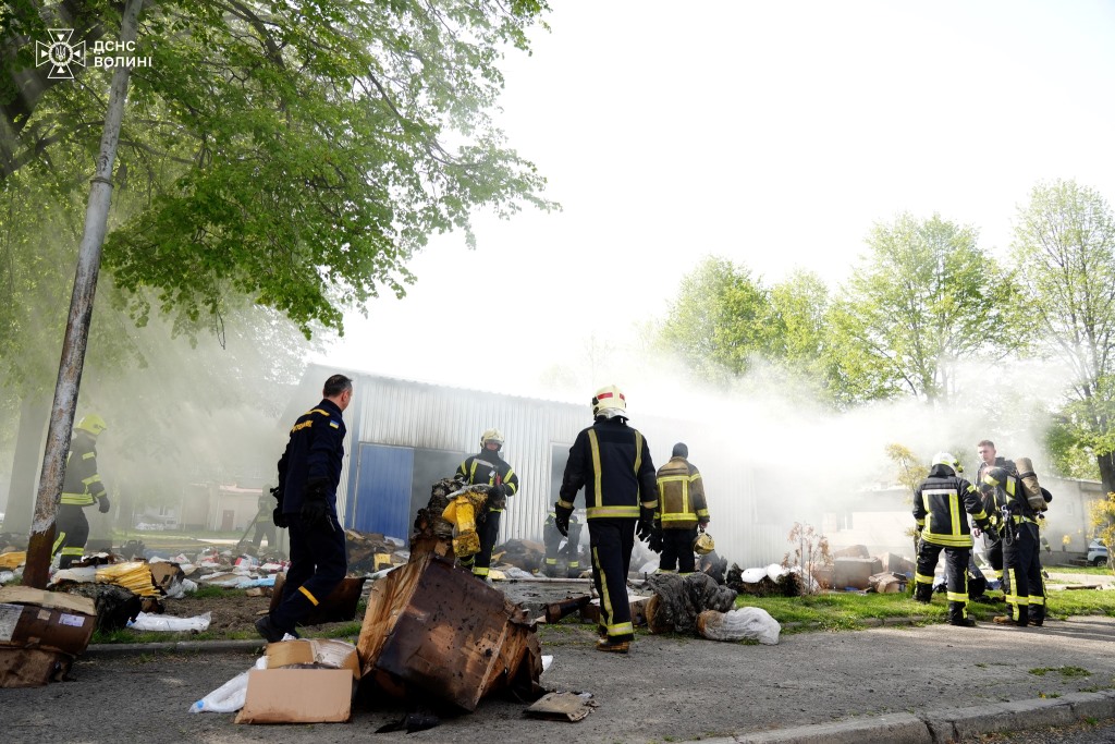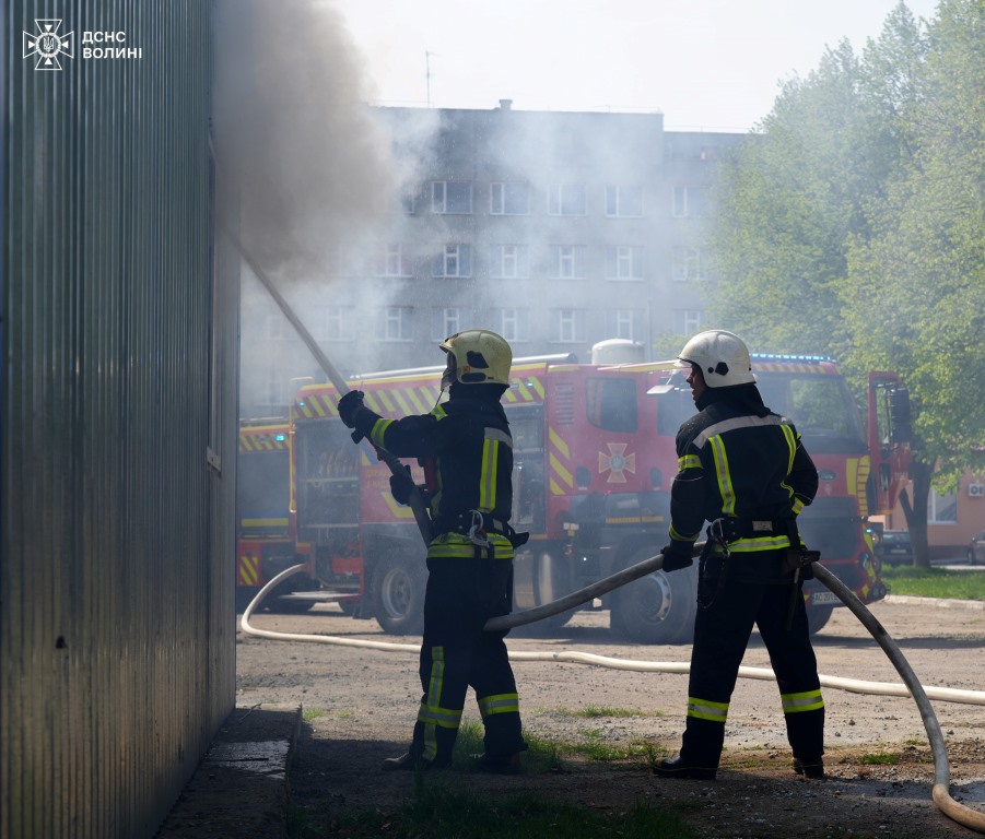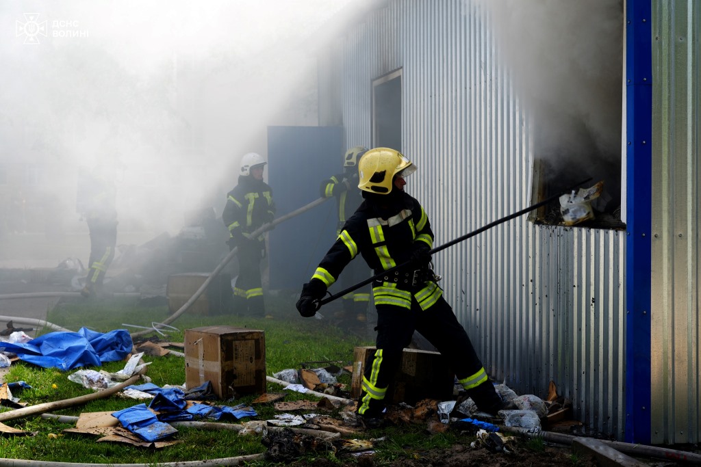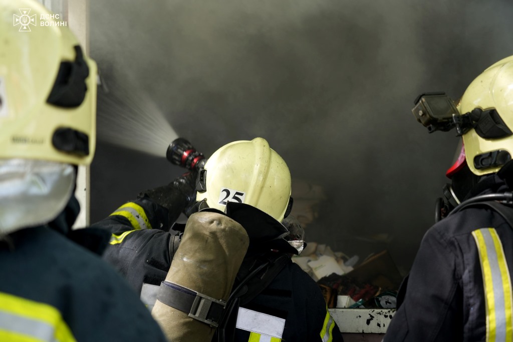У Луцьку горіла складська будівля із засобами індивідуального захисту