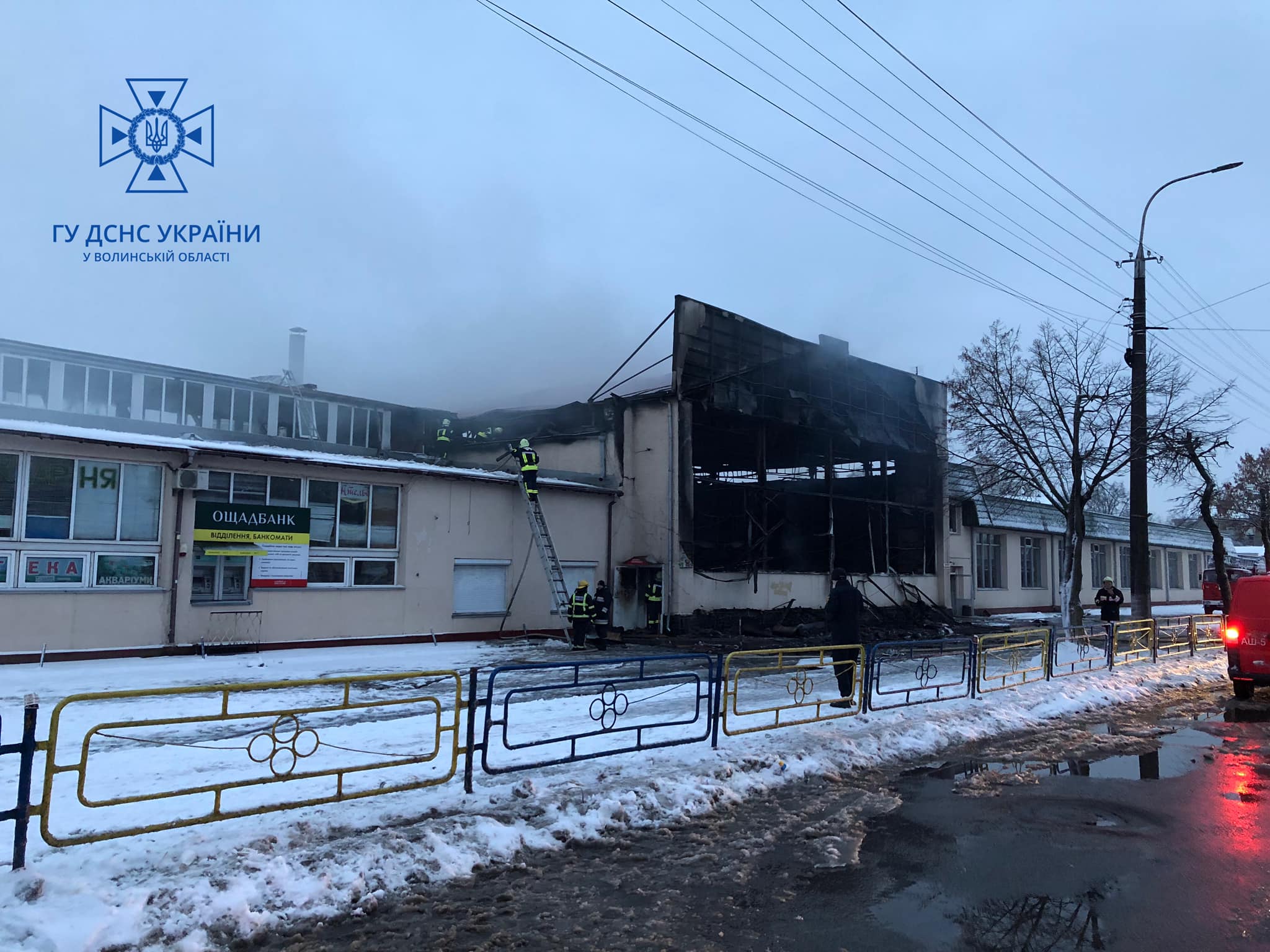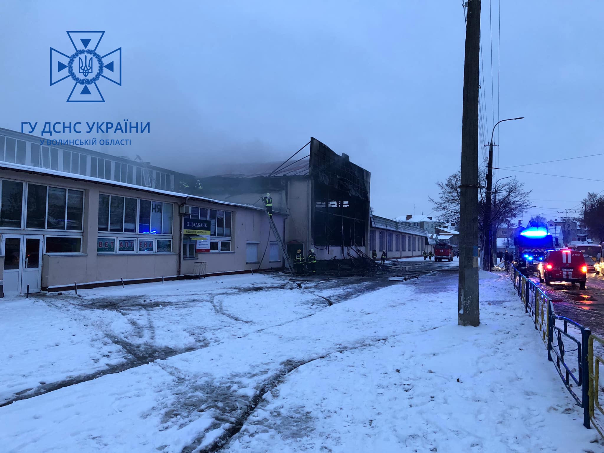 У Луцьку рятувальники ліквідували пожежу в торговому павільйоні ринку. Врятували значну частину будівлі – південну та північну частини торгового павільйону.