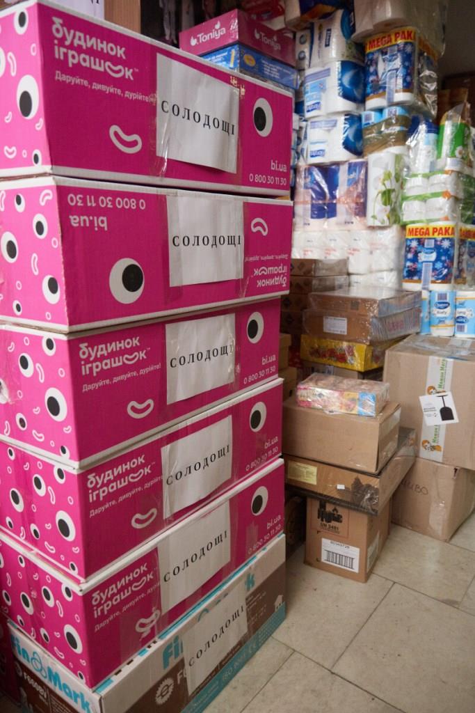 Вантаж складають по секціях. Окремо — засоби гігієни, продукти харчування, одяг, господарський інвентар. Очільниця міського ЦНАПу Лариса Карп’як, приміром, зараз на сортуванні продукції для дітей. Жінка каже: її команда працює від ранку і до смерканку, тому українські армійці за свої тили можуть бути спокійними. Станом на сьогодні було прийнято, розподілено та відправлено 3200м³ продукції.