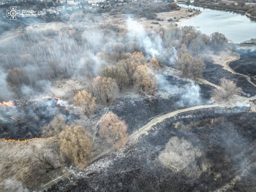 У Луцьку ліквідували масштабну пожежу сухостою на Гнідавському болоті