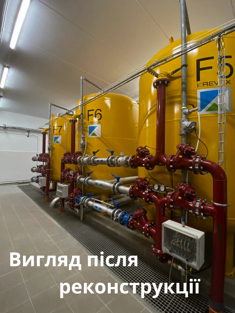 Метою проєкту реконструкції станції водопідготовки є модернізація технічнологічної системи, встановлення найсучасніших фільтрів, переобладнання насосних станцій, а також отримання параметрів очищеної води, що відповідають сучасним стандартам якості й безпеки. Інноваційна складова проєкту полягає у застосуванні сучасних технологій KREVOX та Culligan, вона дозволяє також досягнути більшої швидкості фільтрації, що веде до економії на габаритах приміщень і загальних витрат. Технологічні процеси водопідготовки після реконструкції перейдуть в автоматизований режим роботи й практично виключать вплив людського фактора на результат роботи системи. Виробництво, кероване мікрочипами, дасть можливість забезпечити найвищу якість питної води.