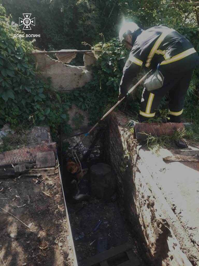 Сьогодні у Луцьку на вулиці Залізничній рятувальники Аварійно-рятувальної частини з обласного центру врятували песика, який впав у господарську яму та не міг самостійно вибратися.