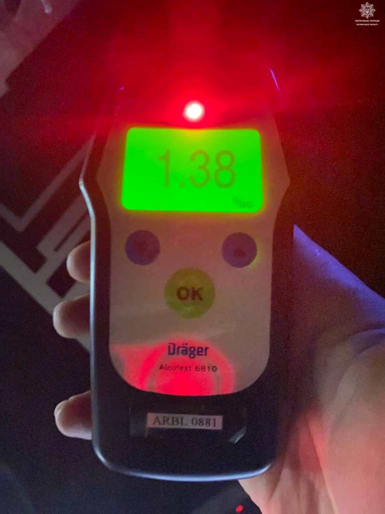 Під час спілкування з керманичем патрульні помітили у нього ознаки алкогольного сп’яніння. Чоловік погодився пройти тест за допомогою приладу Драгер. Результат – 1,38 проміле.