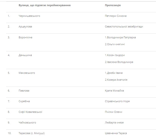 Керуючись законами України «Про місцеве самоврядування», «Про присвоєння юридичним особам та об’єктам права власності імен (псевдонімів) фізичних осіб, ювілейних та святкових дат, назв і дат історичних подій» Луцька міська рада інформує про початок проведення громадського обговорення пропозицій щодо перейменування вулиць у місті Луцьку та селі Милуші.