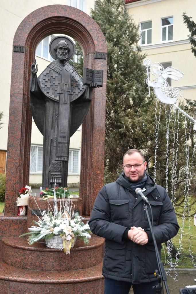 Поблизу пам’ятника Святому Миколаю міський голова Ігор Поліщук побажав усім добра, миру, злагоди та радості.