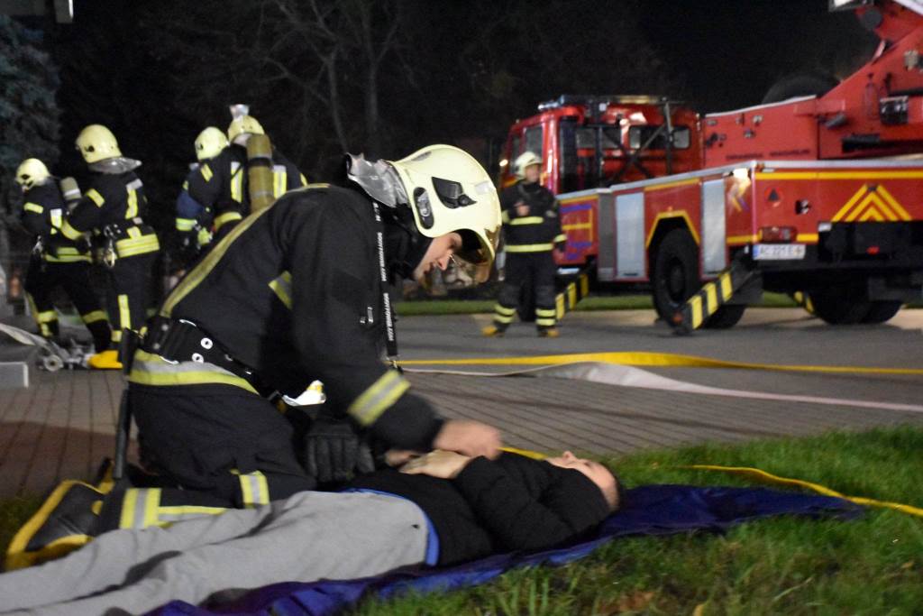 Працівники двох пожежно-рятувальних підрозділів обласного центру відпрацювали алгоритм дій з пошуку потерпілих і їх порятунку, а також ліквідації пожежі з урахуванням різних варіантів її поширення.