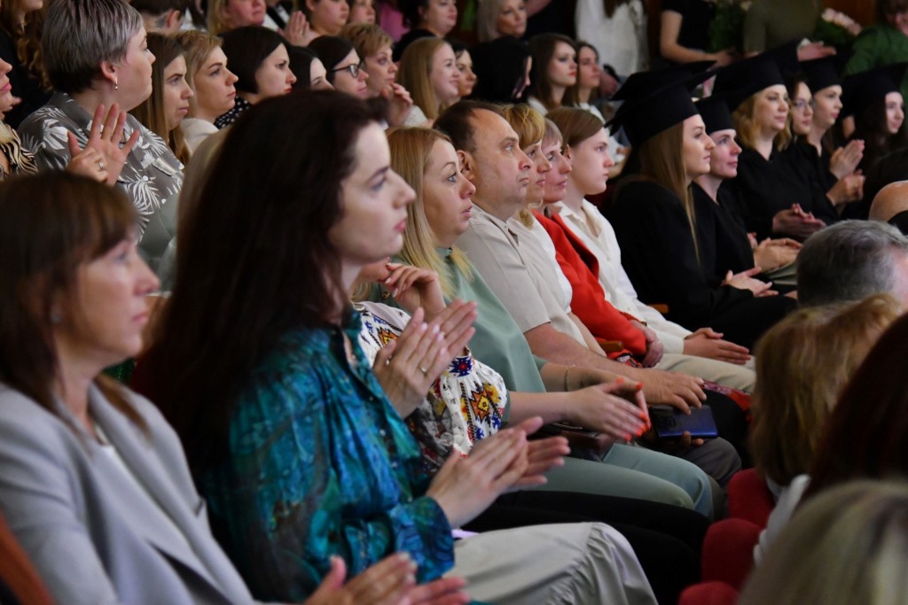 «В нашому регіоні, наприклад, є не більше 20 таких фахівців. І ви, дорогі випускники, входите в цю двадцятку. Ви обрали професійний шлях, який потребує не лише знань, а й сили духу, чуйності, стійкості та великого серця. Сьогодні ви не просто фахівці з дипломом магістра – ви лідери медсестринства, які готові приймати виклики сучасної медицини, впроваджувати інновації, підтримувати пацієнтів не лише фізично, а й морально, і ми вам у цьому, сподіваюсь, допомогли», – зауважив він.