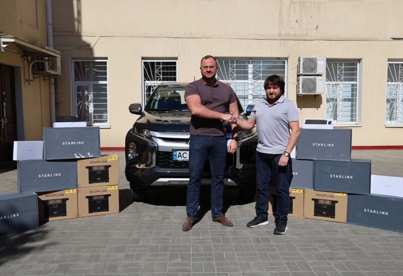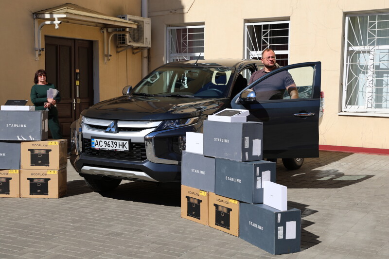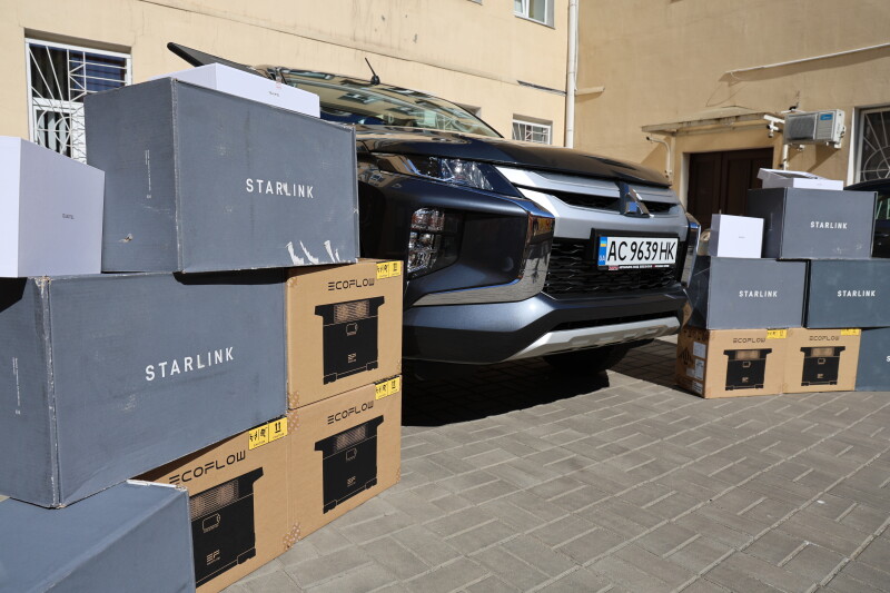 Ця поставка включає в себе сім супутникових модемів Starlink, 5 зарядних станцій EcoFlow Delta Max, п’ять броньованих планшетів OUKITEL і автомобіль – Mitsubishi L200. Ключі від нього міський голова передав представнику частини, яка виконує бойові завдання на півдні України.
