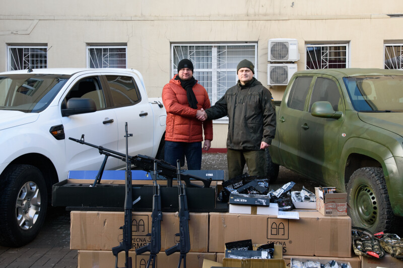 Також для військових передано й тренувальну стрілецьку зброю й шість наборів для розмінування. Ігор Поліщук зауважив, що це обладнання закупили на прохання наших нацгвардійців, аби вони могли краще готувати особовий склад для виконання завдань із захисту України від російських загарбників.