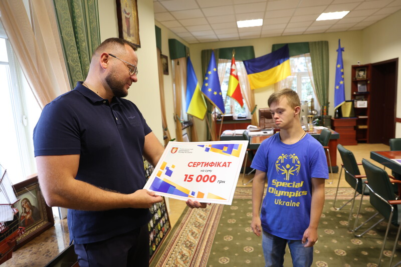 Також сьогодні міський голова зустрівся з легкоатлетом Валентином Новосадом – спортсменом Спеціальної Олімпіади України, учасником Всесвітніх літніх ігор Спеціальної Олімпіади у Берліні 2023 року. На змаганнях за участю 160 країн світу юнак із синдромом Дауна здобув срібло і бронзу. У 2024 році був визнаний кращим атлетом України, а цього року – кращим атлетом Спеціальної Олімпіади за версією Асоціації спортивних журналістів України.