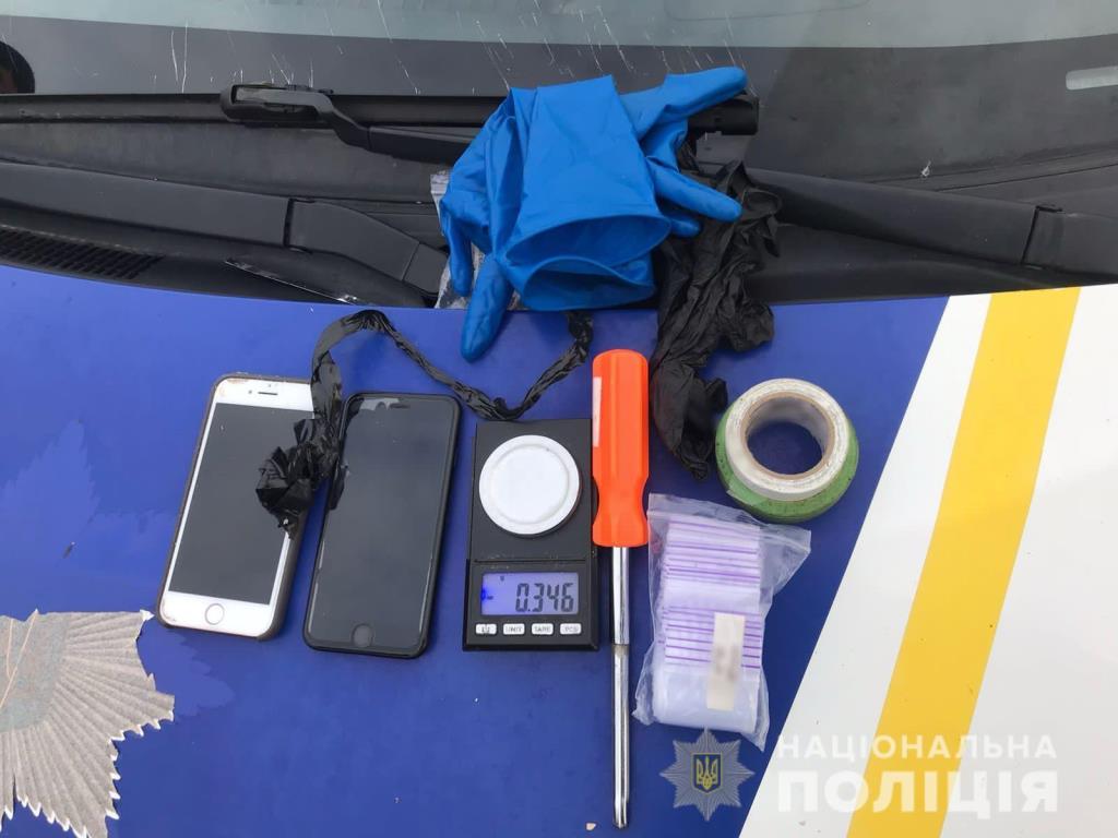 Чоловік при собі мав 30 закладок з психотропною речовиною «альфа», електронні ваги, 2 мобільних телефони та зіп пакети.