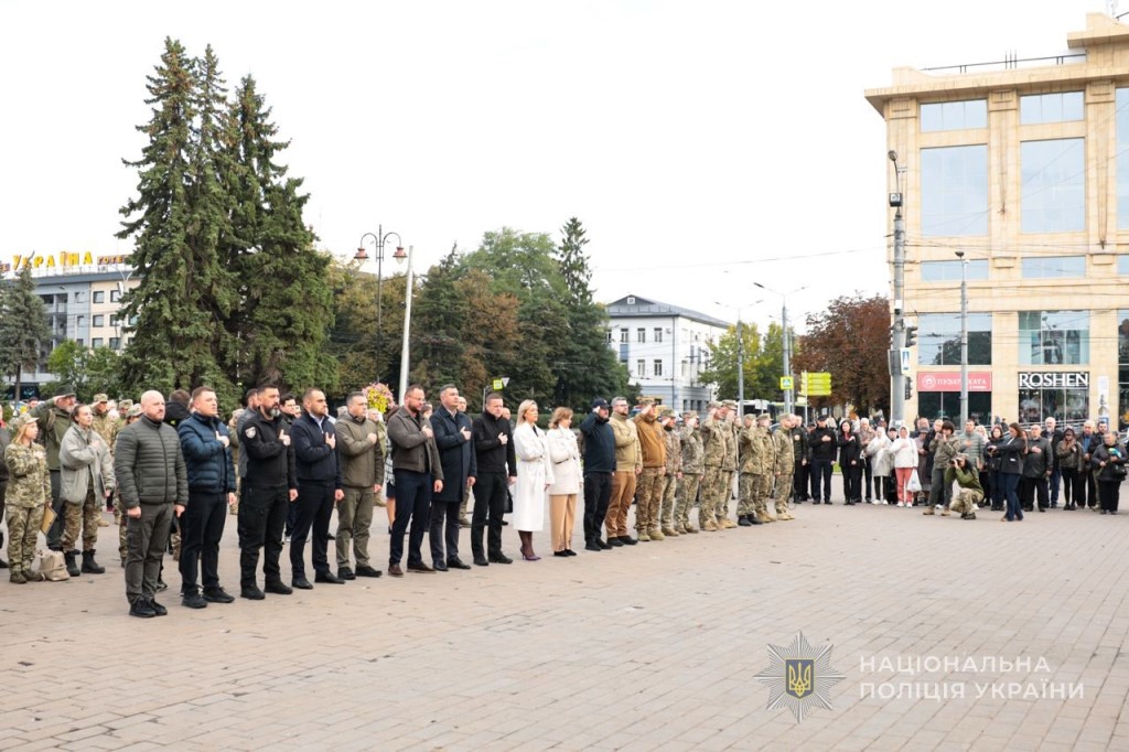 День захисників і захисниць розпочався з участі працівників поліції в загальнонаціональній хвилині мовчання та молебні за загиблими героями на Театральному майдані. Керівництво та містяни поклали квіти до пам’ятного фотостенду «Герої Небесної Сотні – Загинули за Єдність України».