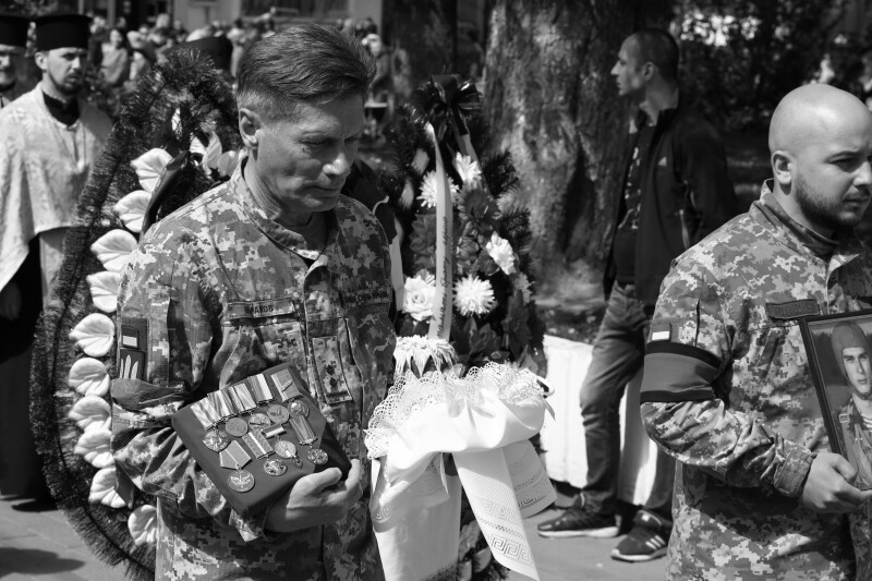 Опісля панахиди тіло військовослужбовця прощальною ходою пронесли Театральним майданом нашого міста. Щирі співчуття рідним і близьким! Вічна пам‘ять та слава Героям!