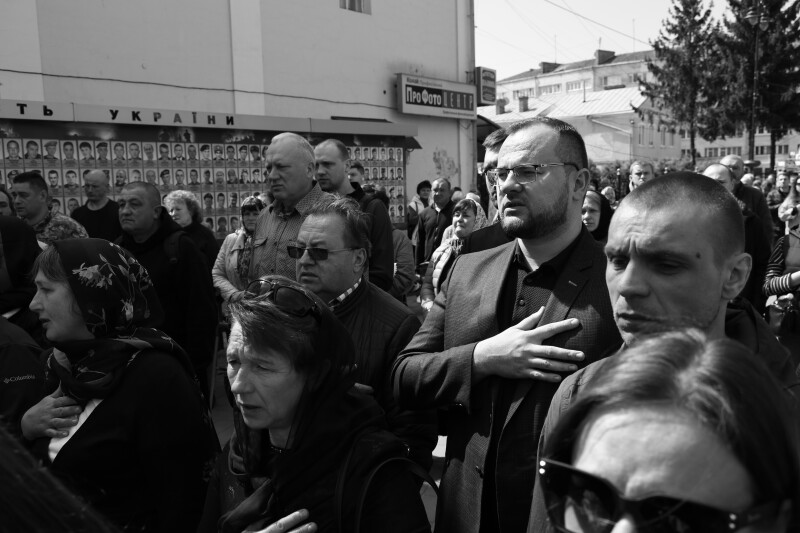 До молитви за упокій душі померлого разом із родиною, громадою та військовими побратимами долучився міський голова Ігор Поліщук, його заступник Ірина Чебелюк, секретар Луцької міської ради Юрій Безпятко, працівники виконавчих органів та окремі депутати.