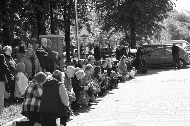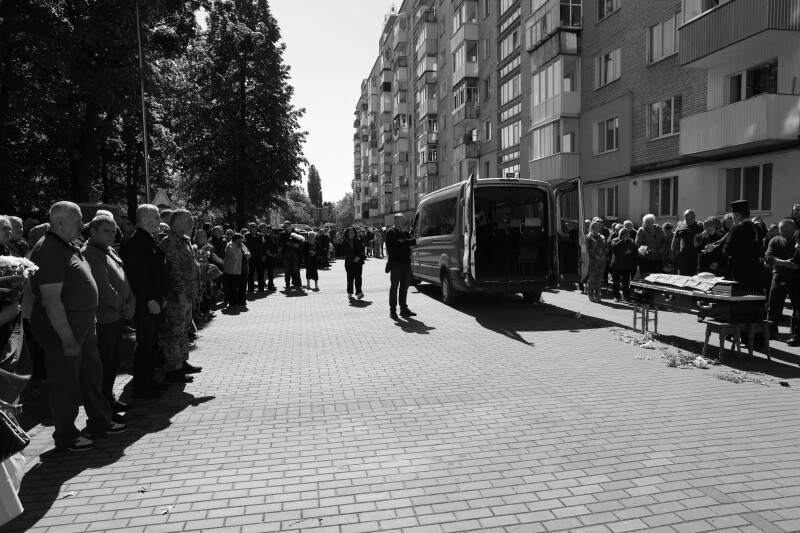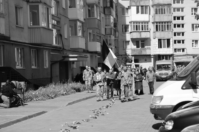 Сьогодні, 21 травня, у Луцьку поблизу будинку на проспекті Соборності 13 в, усі охочі мали змогу попрощатися із Героєм Юрієм Кравчуком. Віддати останню шану військовослужбовцю до будинку, де проживав воїн, прийшли заступник Луцького міського голови Ірина Чебелюк, родина, сусіди та побратими.