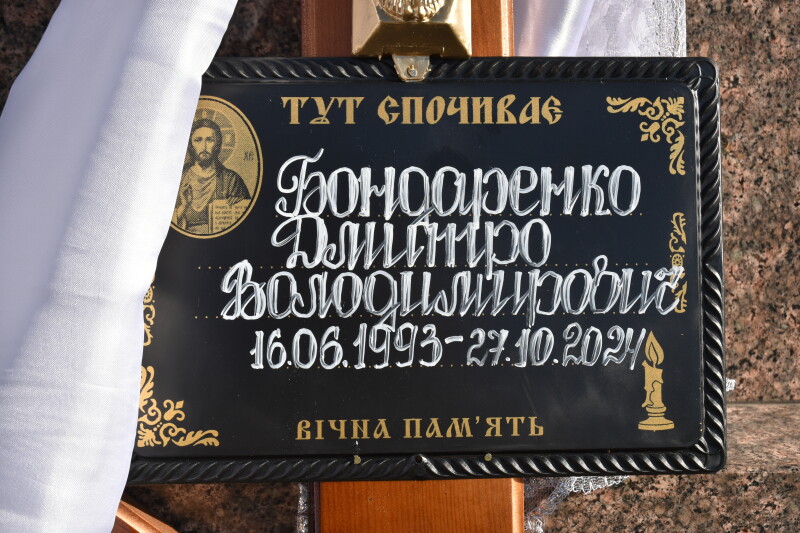 Поховали Дмитра Бондаренка у секторі військових поховань на міському кладовищі у селі Гаразджа.