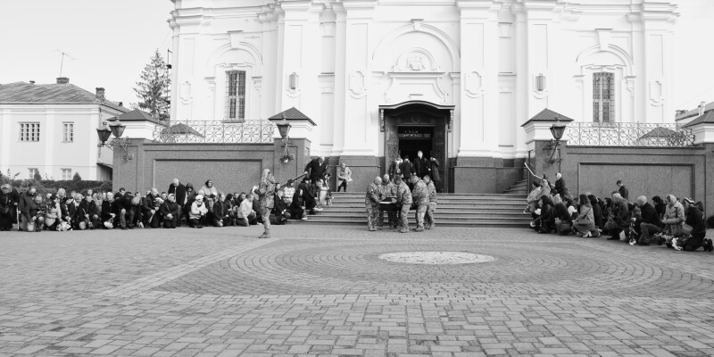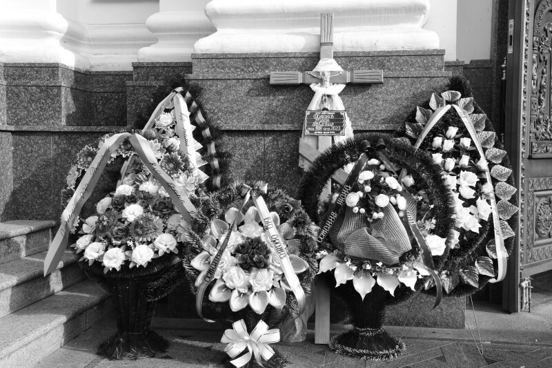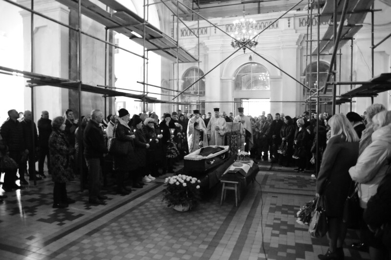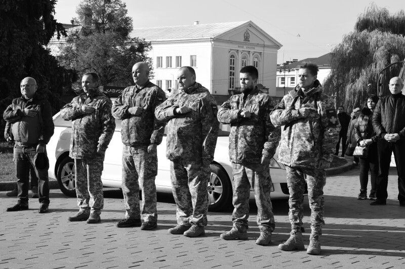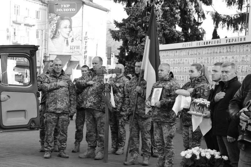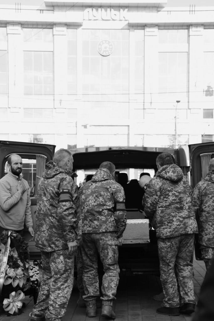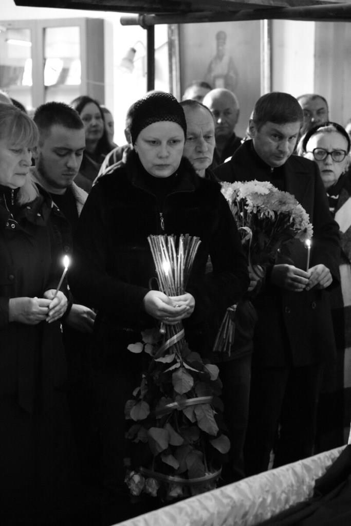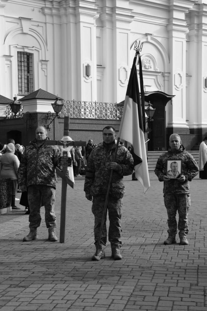 Після завершення панахиди домовину з тілом Героя прощальною ходою пронесли Театральним майданом. Біля фотостенду “Герої Небесної Сотні – Загинули за єдність України” скорботна процесія зупинилася і виконала Державний Гімн.