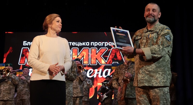 Присутня на заході заступник Луцького міського голови Ірина Чебелюк у своїй промові зазначила, що пишається нашими військовослужбовцями, подякувала усім артистам-воїнам та вручила Подяки Луцького міського голови.